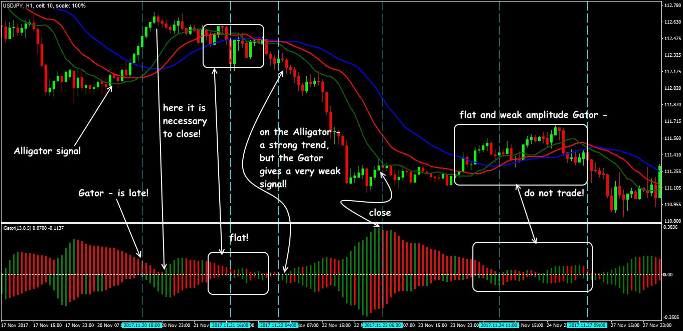 Gator Oscillator was created as an auxiliary tool for trading using the Alligator indicator, so it gives practically the same signals.