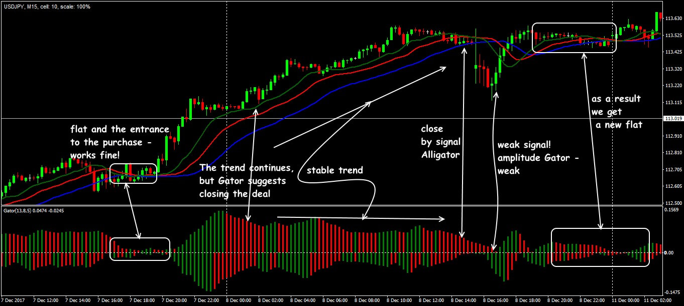 In any case, when a potential entry point on Alligator indicator appears, you need to pay attention to the amplitude of the Gator Oscillator histogram.