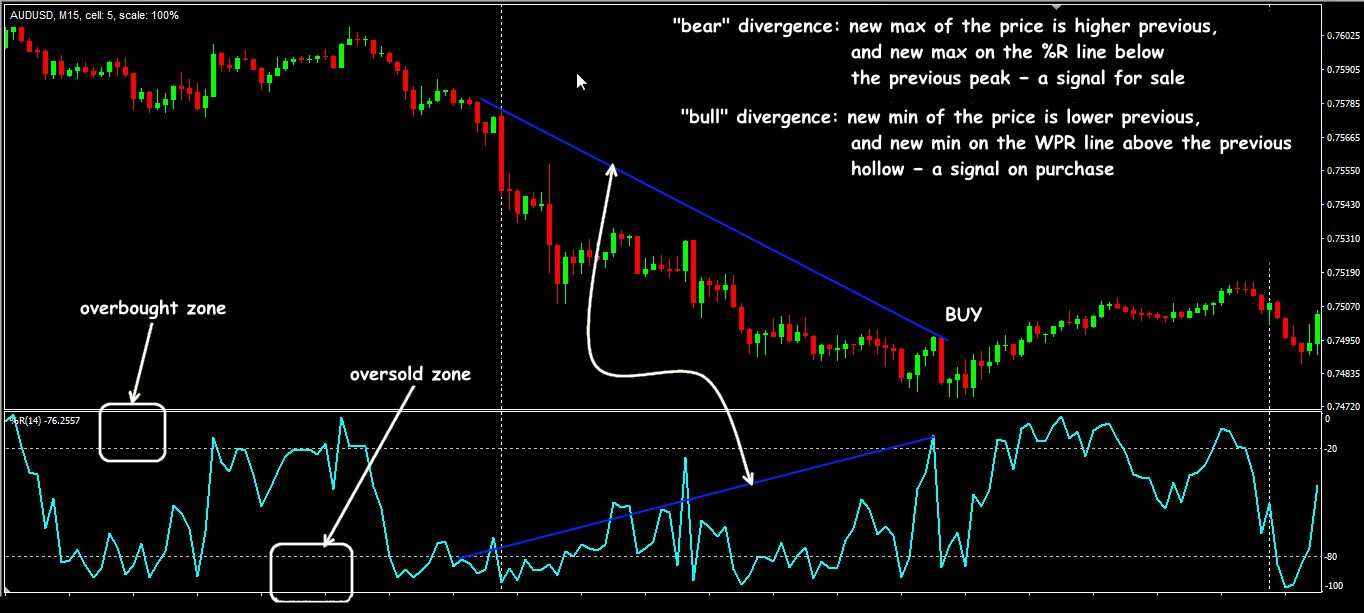Trading scheme divergence Williams%R