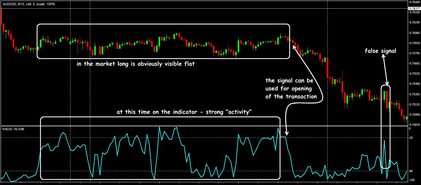 Sometimes too active dynamics of the WPR indicator is misleading, so the trader should clearly understand the current state of the market. Of course, if you initially correctly defined the direction, then WPR may will be effective as part of complex trading systems as a pulse filter.