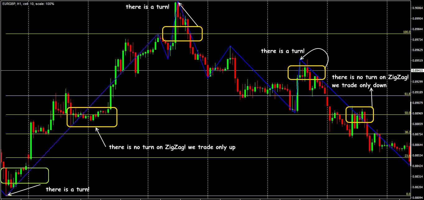 In the case of success, indicator will create the new site of the broken line already against a trend, and the further − cycle is repeated (see Trading with ZigZag indicator).